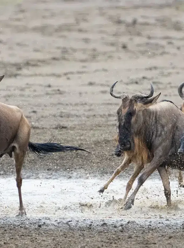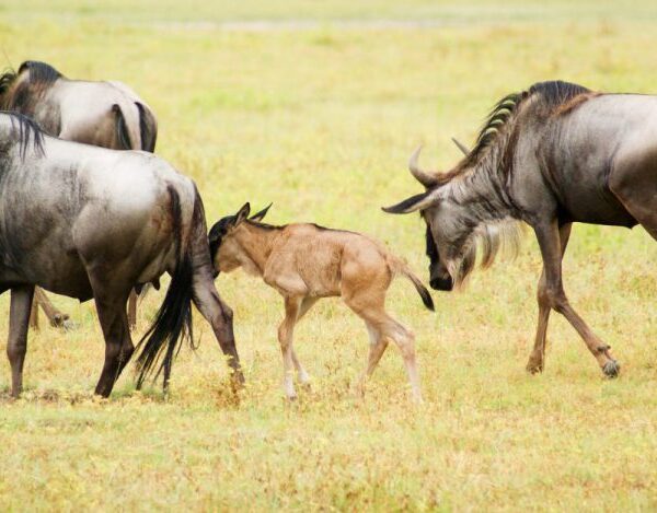 Our seven-day Wildebeest Migration Calving Season safari combines visits to the Ndutu region of the Serengeti, the Ngorongoro Conservation Area and Tarangire National Park. Witness the birth of up to 8000 calves a day during this magical time for the Wildebeest Migration. The perfect safari itinerary for a visit over months of December to March. Life begins for a huge number of animals in the Ndutu region of the Ngorongoro Conservation Area. In the space of a few short weeks, the calving season sees half a million young wildebeest brought into the world. This is due to the rainy season combining with the fertile volcanic soil of the region to create a lush carpet of short grass rich in essential vitamins. It is here that the vast herd begins to take shape, and it is here that the predators begin their yearlong assault upon the herd. With so many young and weak calves stumbling around, it becomes easy for the lions, leopards, and cheetahs to pick off a tasty morsel.